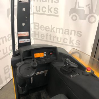 De Jungheinrich ETV214 uit 2011, aangeboden door Beekmans Heftrucks, is een krachtige gebruikte reachtruck met een hefhoogte van 8300 mm en een capaciteit van 1400 kg. Deze reachtruck beschikt over 360 graden sturing, side shift, en een armsteun met mini lever voor extra gebruiksgemak. Dankzij de non-marking banden is deze machine perfect voor magazijnen met delicate vloeren.