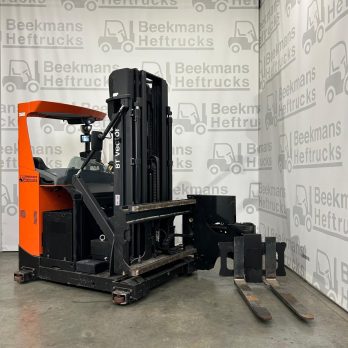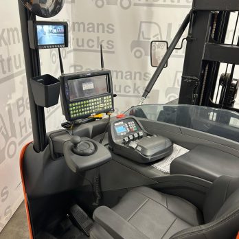 Uitgerust met handige functies zoals 360 graden sturing, side shift, hoogteregistratie, weegsysteem, auto-fill, camera en Vulkollan banden, garandeert deze smallegangentruck nauwkeurigheid en comfort. De mini levers met armsteun zorgen voor extra gebruiksgemak.