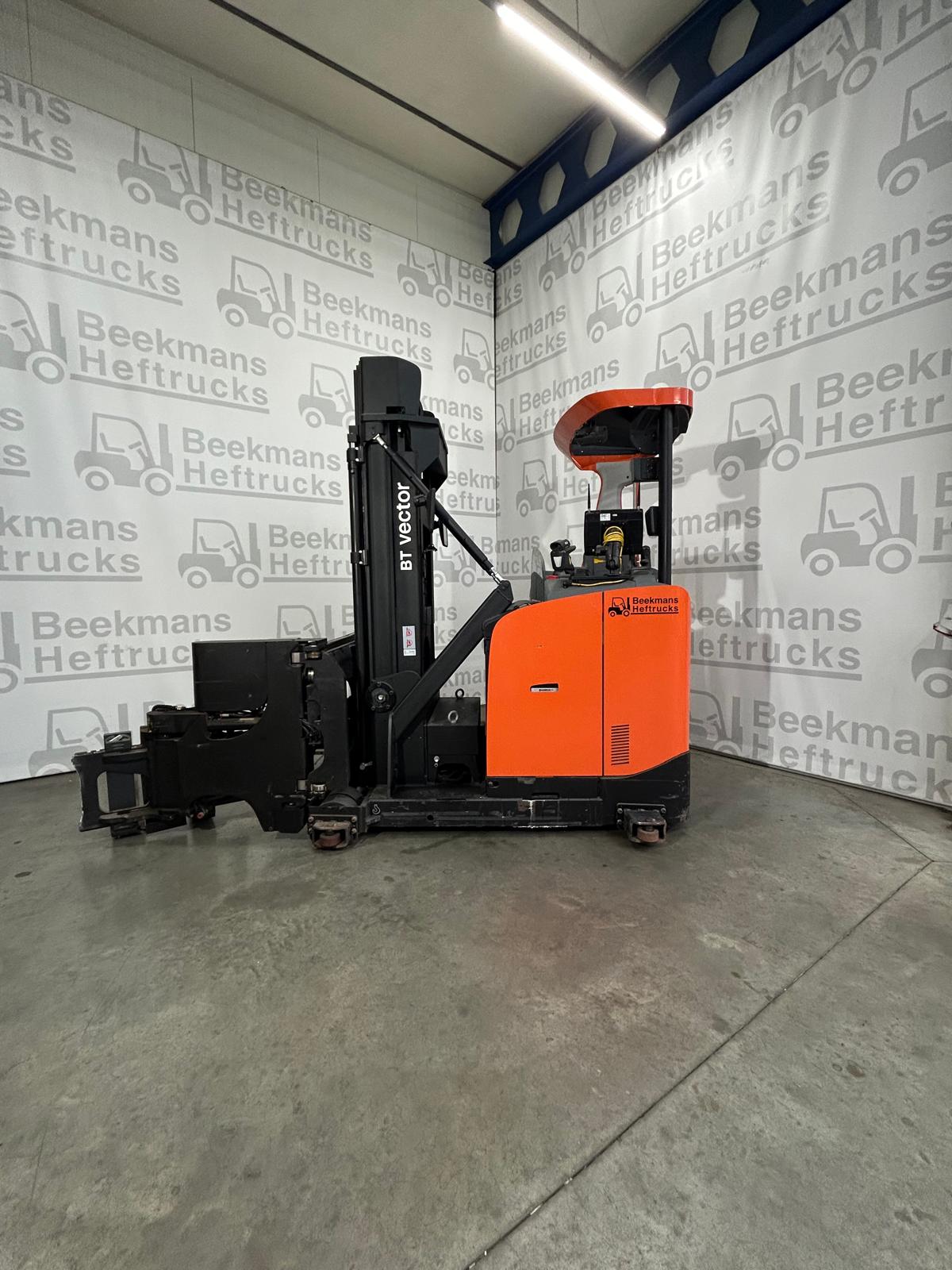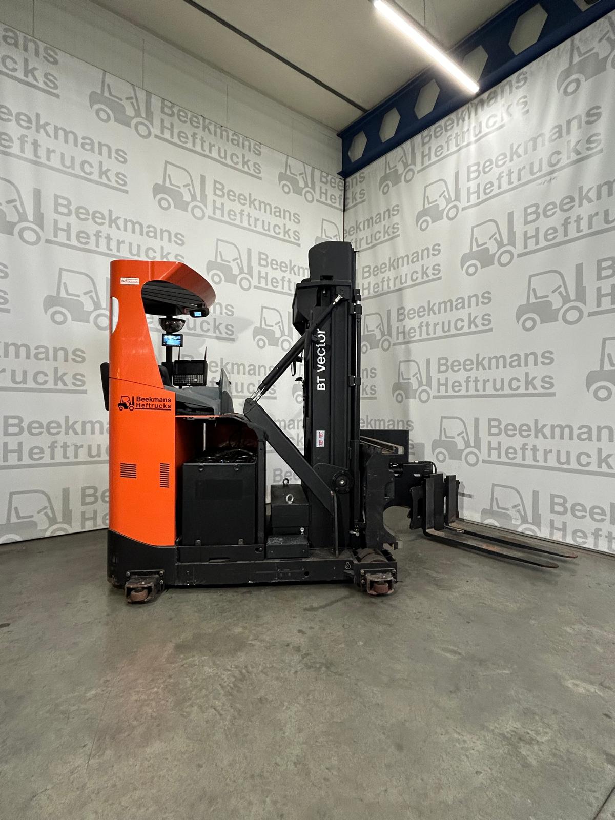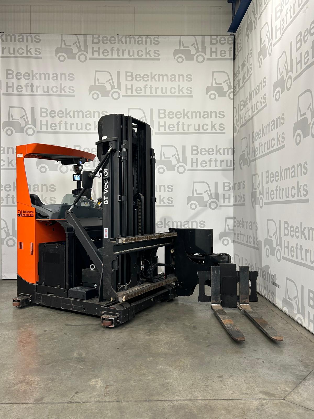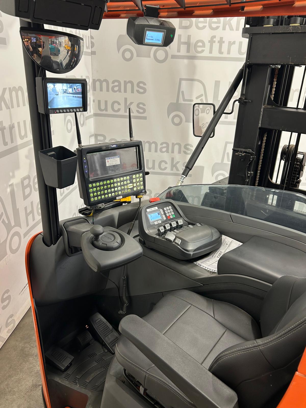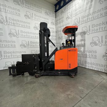 De Toyota VRE150 smallegangentruck van Beekmans Heftrucks is de ideale oplossing voor magazijnen met smalle gangpaden. Deze machine uit 2018 beschikt over een krachtige 48V aandrijfunit met een batterijcapaciteit van 690Ah, en een hefhoogte van 4300 mm. Met een capaciteit van 1500 kg en een doorrijhoogte van 2535 mm is hij perfect voor intensief intern transport.