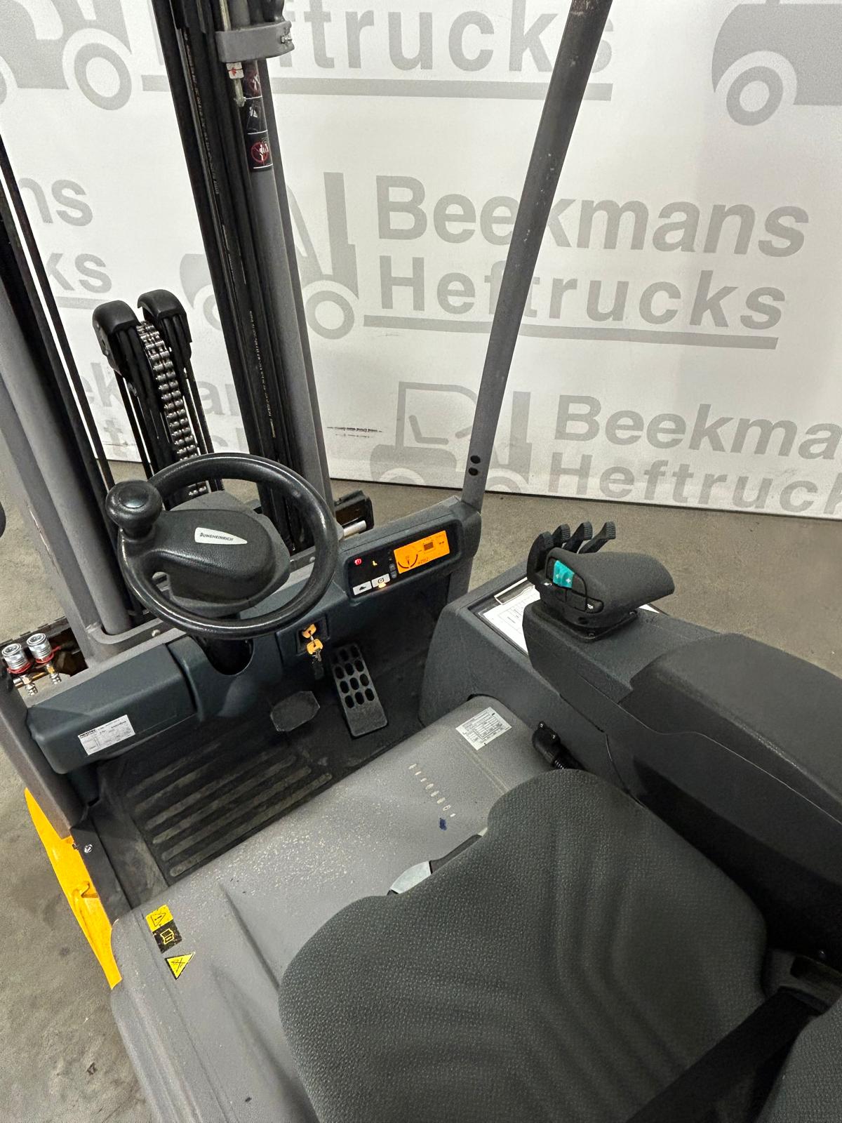De Jungheinrich EFG216 van Beekmans Heftrucks is een krachtige gebruikte elektrische heftruck met een capaciteit van 1600 kg en een hefhoogte van 4400 mm. Met een compacte doorrijhoogte van 2020 mm en 1000 mm vorklengte is deze machine ideaal voor diverse magazijn- en logistieke toepassingen.