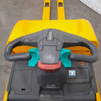 De Jungheinrich ERE225 van Beekmans Heftrucks is een elektrische pompwagen met een capaciteit van 2500 kg en lepels van 2400 mm lang. Deze pompwagen uit 2018 is uitgevoerd met een tandemstel, waarbij ook een enkele rol mogelijk is. Uitgerust met een 465Ah batterij en een 24V aandrijf unit, zorgt deze machine voor betrouwbare en krachtige prestaties bij diverse taken. Met een urenstand van 12164 is deze machine nog steeds in goede staat en klaar voor gebruik in jouw magazijn of distributiecentrum. Dankzij de robuuste constructie en efficiënte aandrijftechnologie is de ERE225 ideaal voor het verplaatsen van zware ladingen over korte afstanden. Dit model biedt veelzijdige en betrouwbare prestaties voor verschillende toepassingen in de logistieke sector. Meer weten over deze Jungheinrich pompwagen? Neem direct contact op door een offerte aan te vragen via het offerteformulier.