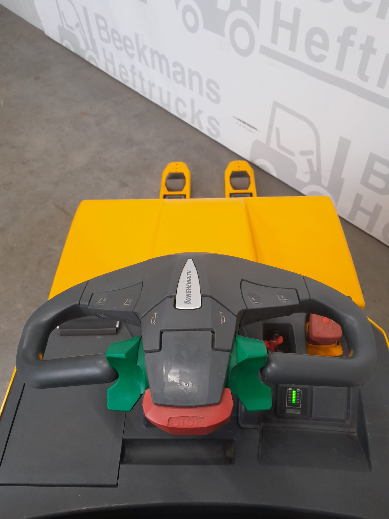 De Jungheinrich ERE225 van Beekmans Heftrucks is een elektrische pompwagen met een capaciteit van 2500 kg en een vorklengte van 1150 mm. Deze pompwagen uit 2013 is uitgerust met een 200Ah Li-ion batterij en een 24V aandrijf unit, wat zorgt voor betrouwbare en krachtige prestaties bij diverse taken. Dankzij de robuuste constructie en efficiënte aandrijftechnologie is de ERE225 ideaal voor het verplaatsen van zware ladingen over korte afstanden. Dit model biedt veelzijdige en betrouwbare prestaties voor verschillende toepassingen in de logistieke sector. Meer weten over deze Jungheinrich pompwagen? Neem direct contact op door een offerte aan te vragen via het offerteformulier.