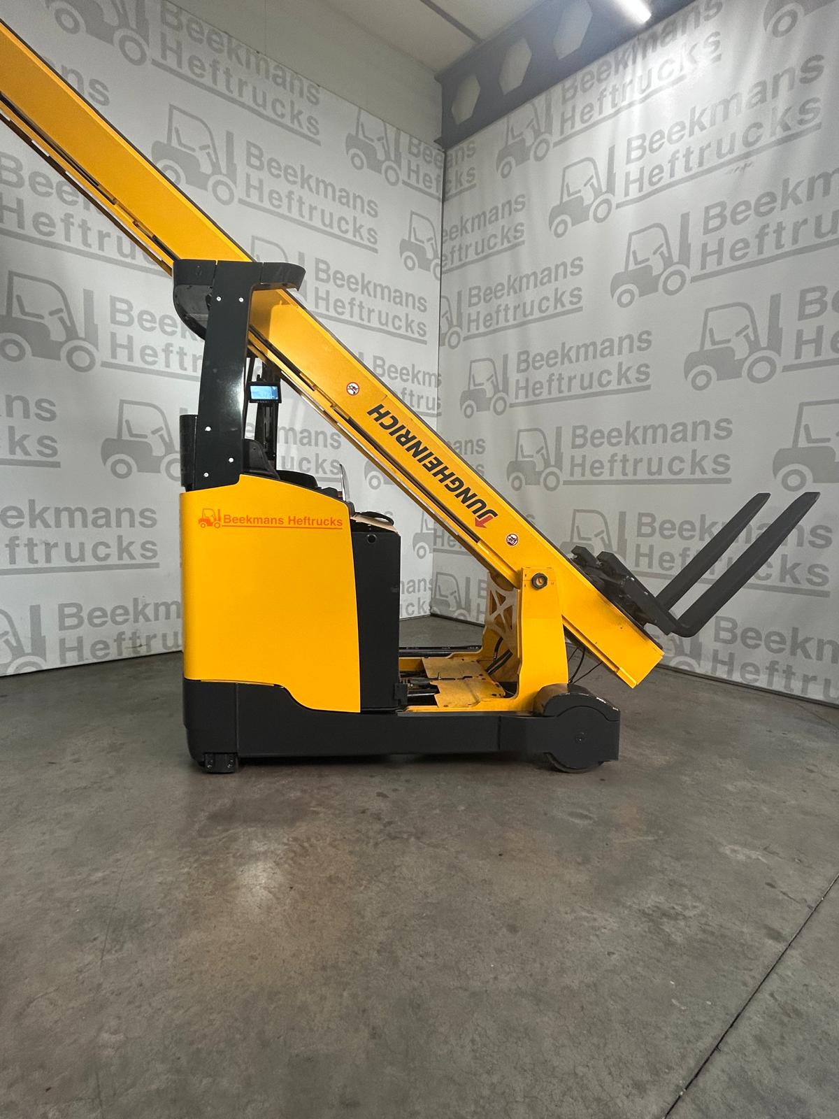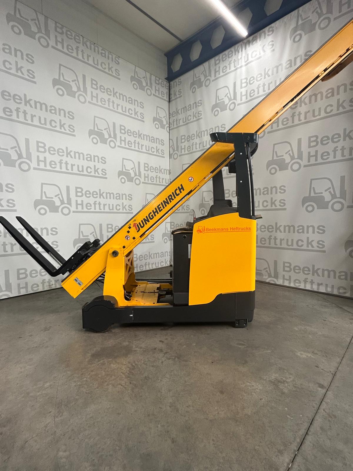De Jungheinrich ETV325 van Beekmans Heftrucks is een krachtige gebruikte reachtruck uit 2015, ideaal voor intensief magazijngebruik. Deze reachtruck heeft een indrukwekkende hefhoogte van 13000 mm en een hefvermogen van 2500 kg, met een compacte doorrijhoogte van 5026 mm.