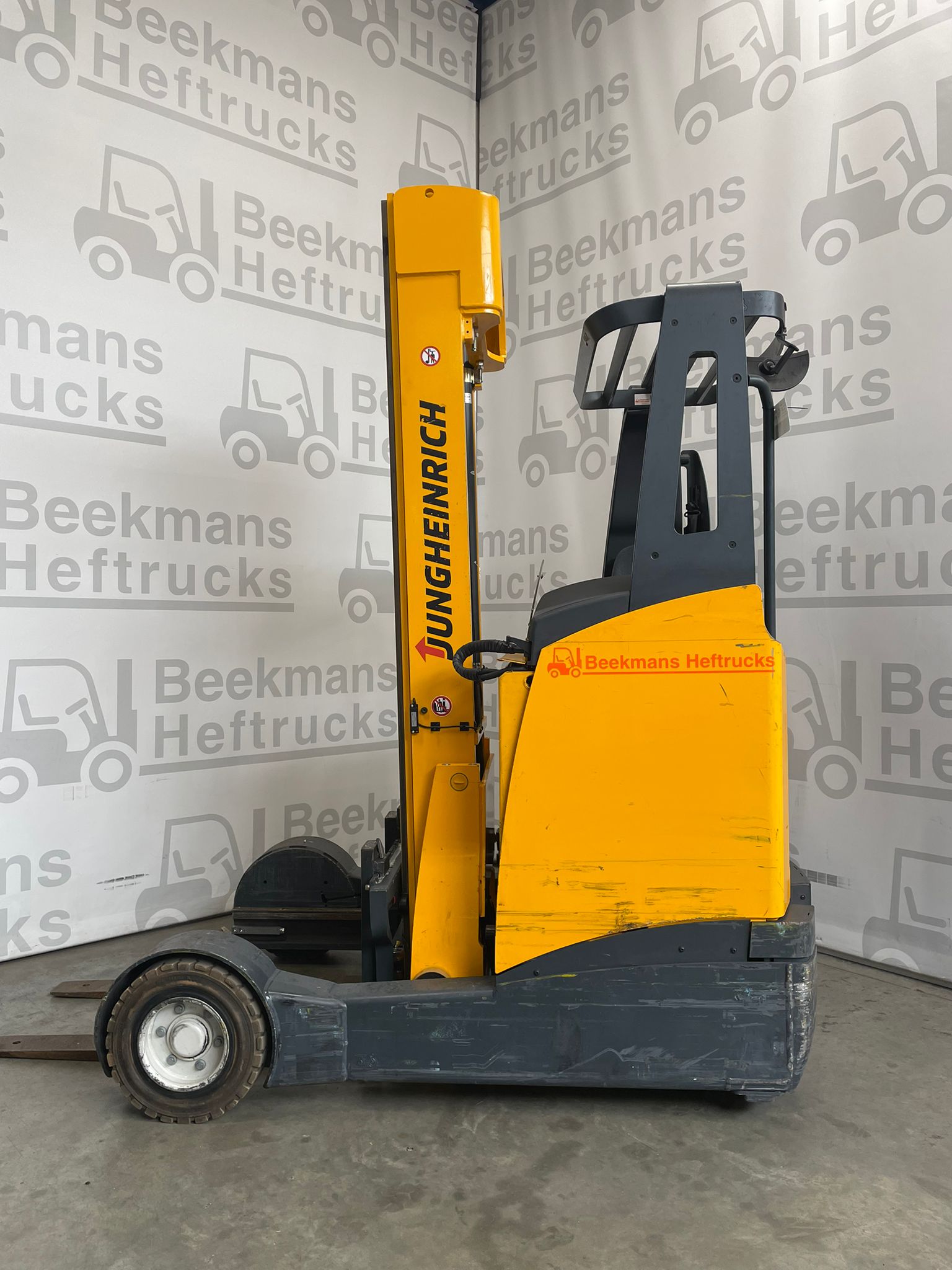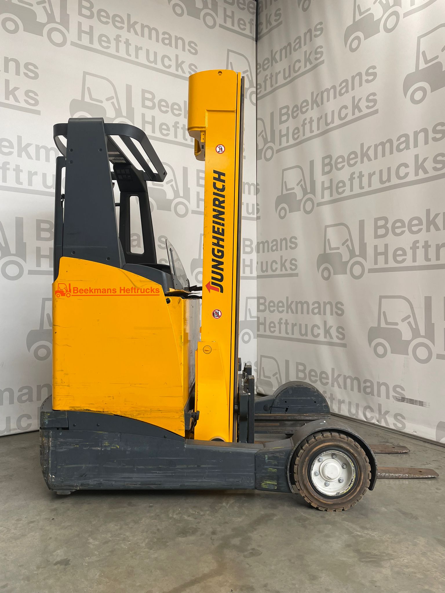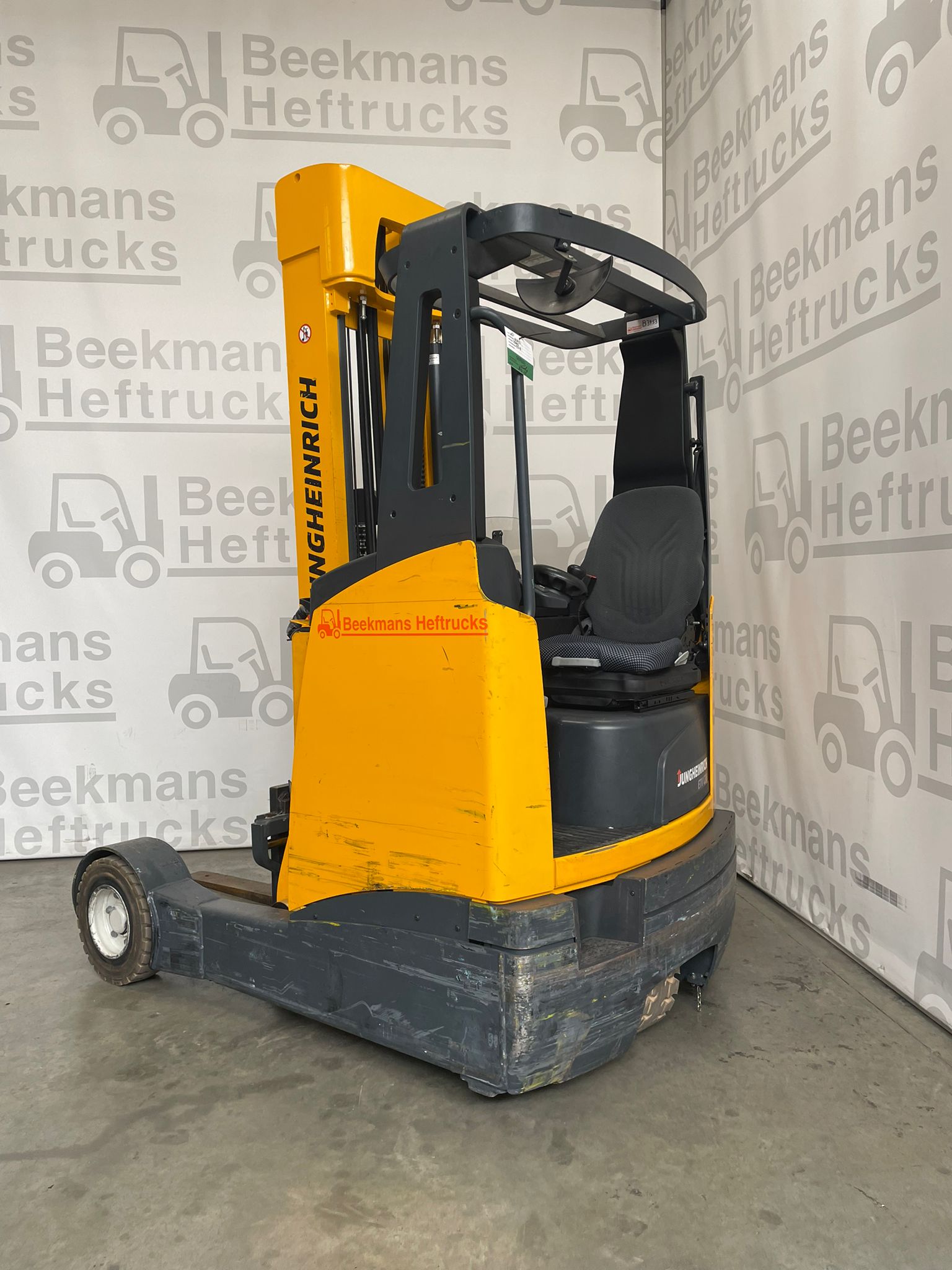 De Jungheinrich ETVC20 2014 van Beekmans Heftrucks is een gebruikte reachtruck met een hefhoogte van 6050 mm en een capaciteit van 2000 kg. Dankzij een krachtige 48V aandrijfunit en een 620Ah batterij uit 2018 levert deze machine stabiele prestaties.