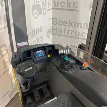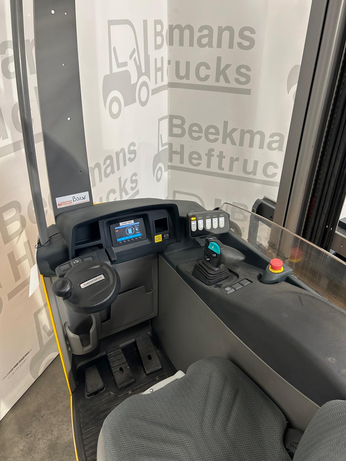 De doorrijhoogte bedraagt slechts 2900 mm, waardoor de reachtruck ook in lage ruimtes goed inzetbaar is. Met een gewicht van 5599 kg en een urenstand van 4564 is dit een uitstekende gebruikte machine in topconditie.