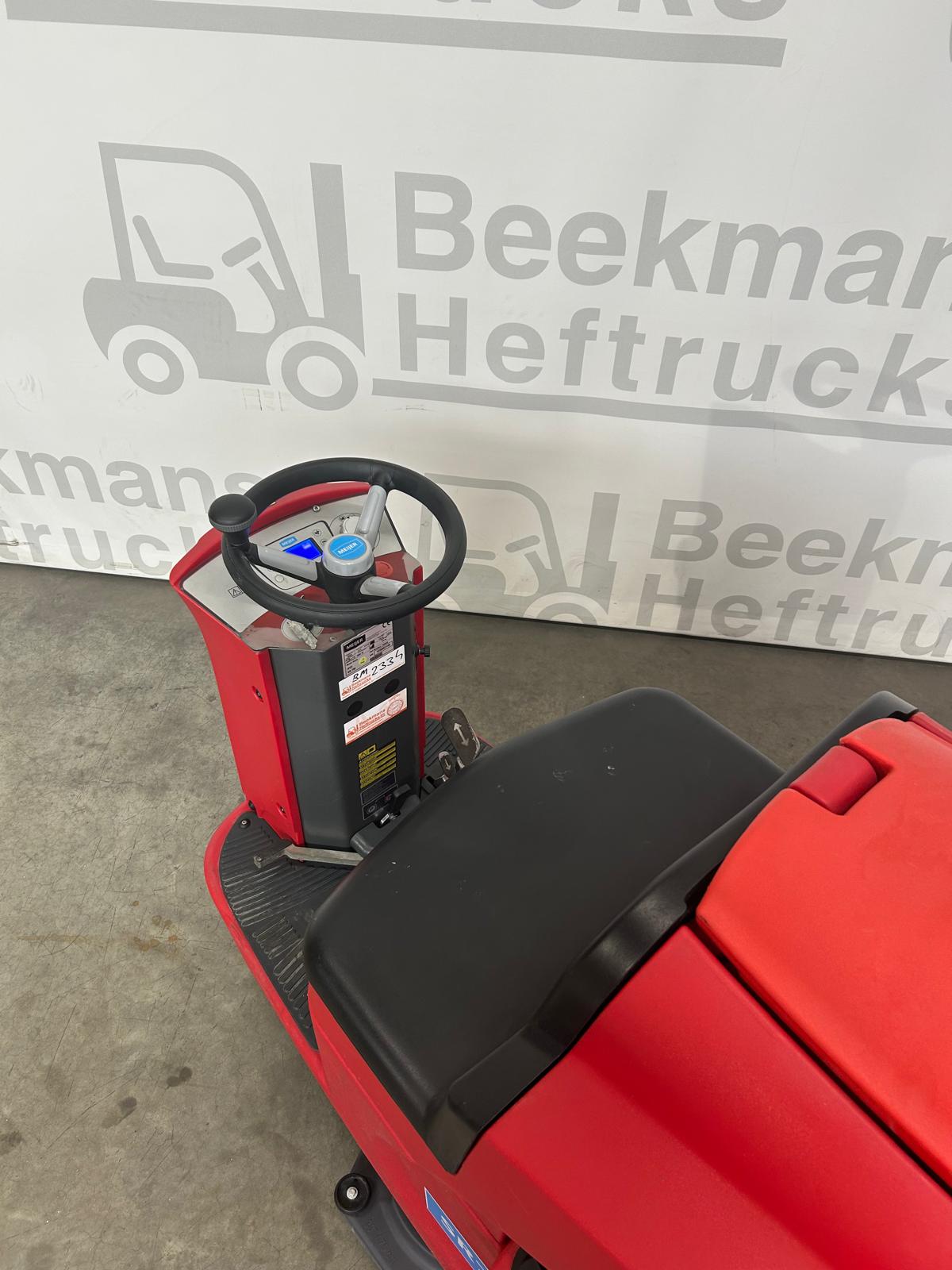 De Meijer SR750 van Beekmans Heftrucks is een krachtige schrobmachine, perfect voor het reinigen van grote oppervlaktes zonder tussenstops. Dankzij het robuuste accupakket en de grote schoon- en vuilwatertanks van respectievelijk 110 liter en 125 liter, kan deze machine tot wel 4500 m² per uur schrobben. De watertoevoer en borsteldruk zijn eenvoudig in te stellen, wat ideaal is voor situaties met verschillende mate van vervuiling. De innovatieve V-vormige dweilmond van 99 cm zuigt al het vuile water moeiteloos op, waardoor uw bedrijfsvloeren weer brandschoon zijn en het risico op onveilige situaties wordt verkleind. Bent u geïnteresseerd in deze krachtige en betrouwbare schrobmachine? Neem direct contact op via ons offerteformulier.