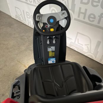 Dankzij de verstelbare borsteldruk van 30-40 kg en de vuil- en schoonwatertanks van 110 liter, levert de SR750C uitstekende resultaten, zelfs op uitdagende oppervlakken. Het compacte ontwerp van 159 x 88 x 124 cm maakt hem wendbaar in krappe ruimtes, terwijl de ergonomische stoel en stille werking (62 dB) zorgen voor optimaal gebruikscomfort. De maximale snelheid van 8 km/u en tractie op het voorwiel zorgen ervoor dat de machine snel en efficiënt te werk gaat, zelfs op hellingen tot 7%.