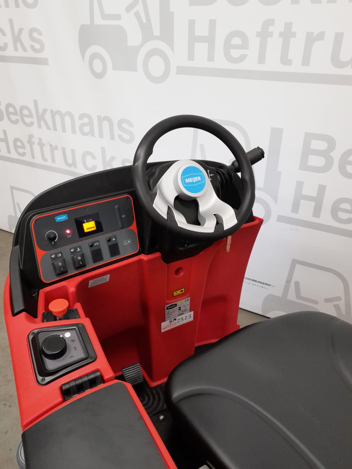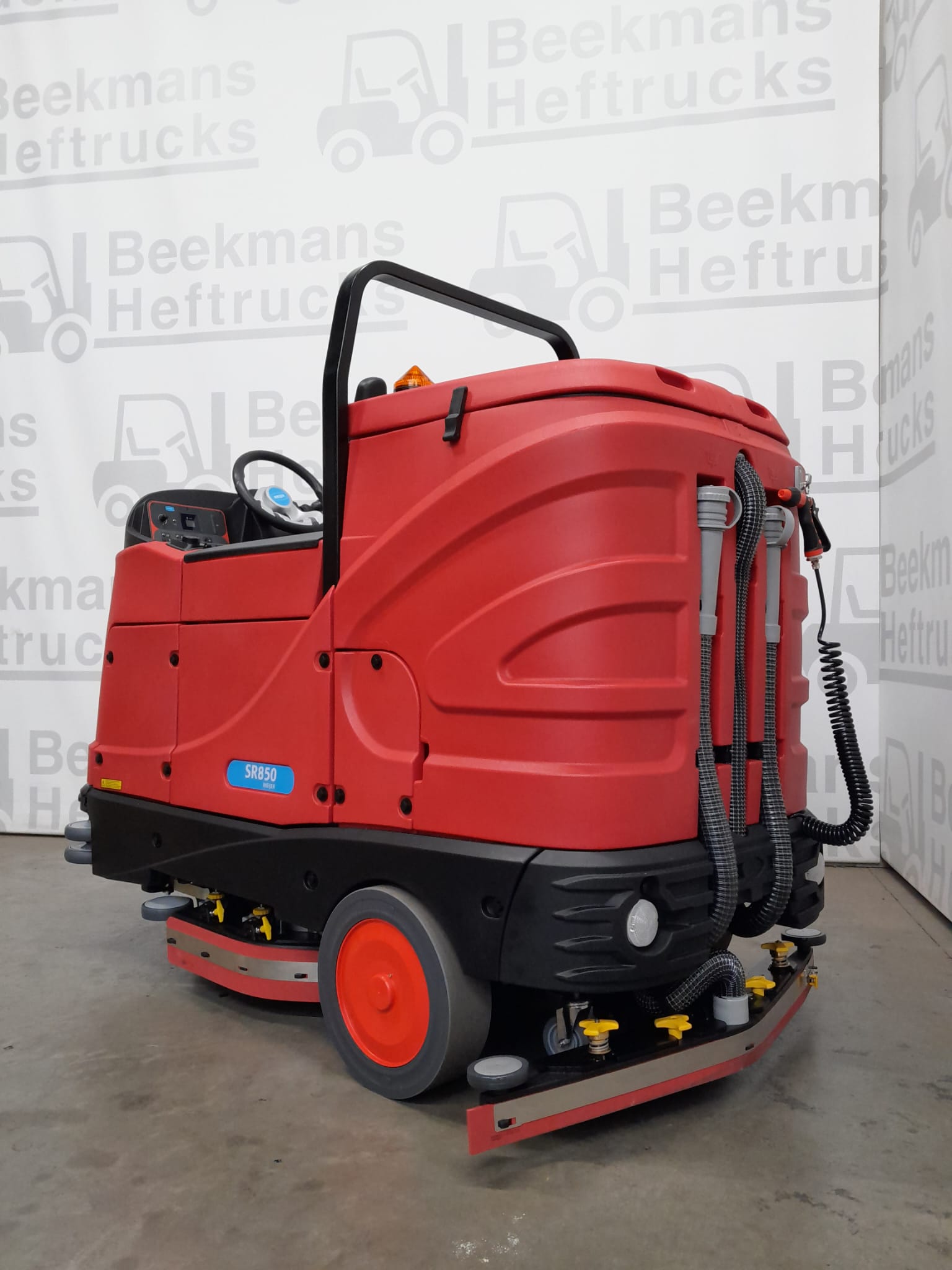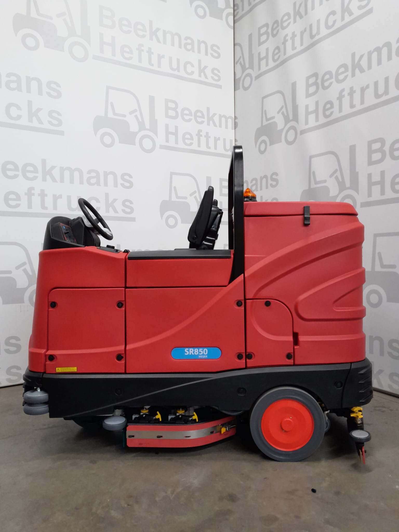 Veiligheid en duurzaamheid: De Meijer SR850 is gebouwd voor comfort en duurzaamheid. De machine is voorzien van stootvaste bumpers met rollertjes om schade te voorkomen bij het raken van muren of stellingen. Voorzien van een achteruitrijzoemer, voor- en achterlichten, en een zwaailamp, is de machine goed zichtbaar en veilig in gebruik.