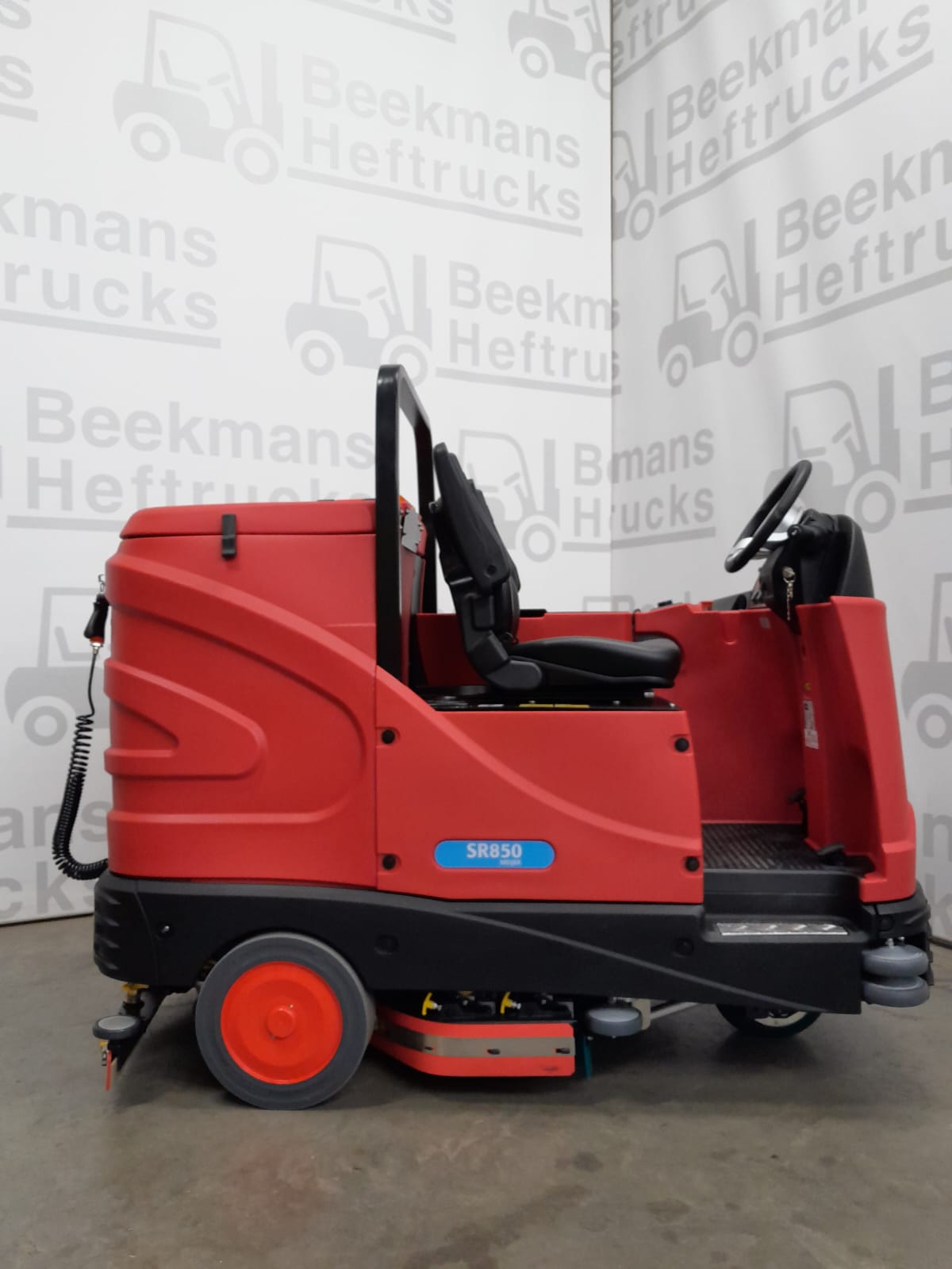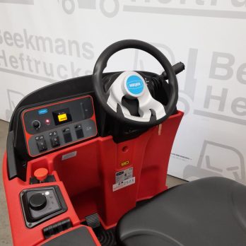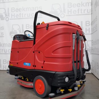 De Meijer SR850 van Beekmans Heftrucks is een betrouwbare zit-schrobmachine, ideaal voor het reinigen van grote oppervlakken met verschillende vervuilingsgraden. Deze machine, met bouwjaar 2023, heeft een indrukwekkende capaciteit van 6800 m² per uur dankzij de grote vuil- en schoonwatertanks van 180 liter en een werkbreedte van 85 cm. Met een borsteldruk van 150kg en een werktijd van ca. 4 uur, kan deze machine zelfs de zwaarste schoonmaakklussen in één keer klaren.