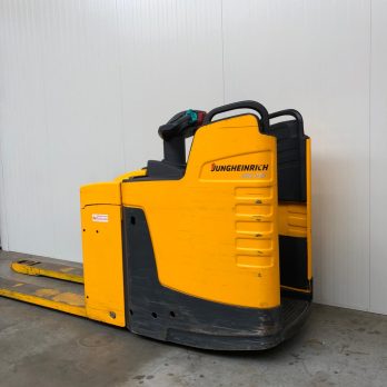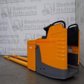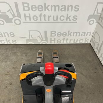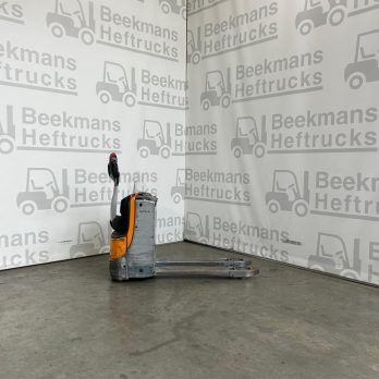 Deze palletwagen is uitgerust met een krachtige 24V aandrijfeenheid en een enkele palletrol voor eenvoudig en stabiel manoeuvreren van pallets. De huidige urenstand is 2022, wat aantoont dat de machine nog in goede staat verkeert en klaar is voor gebruik.
