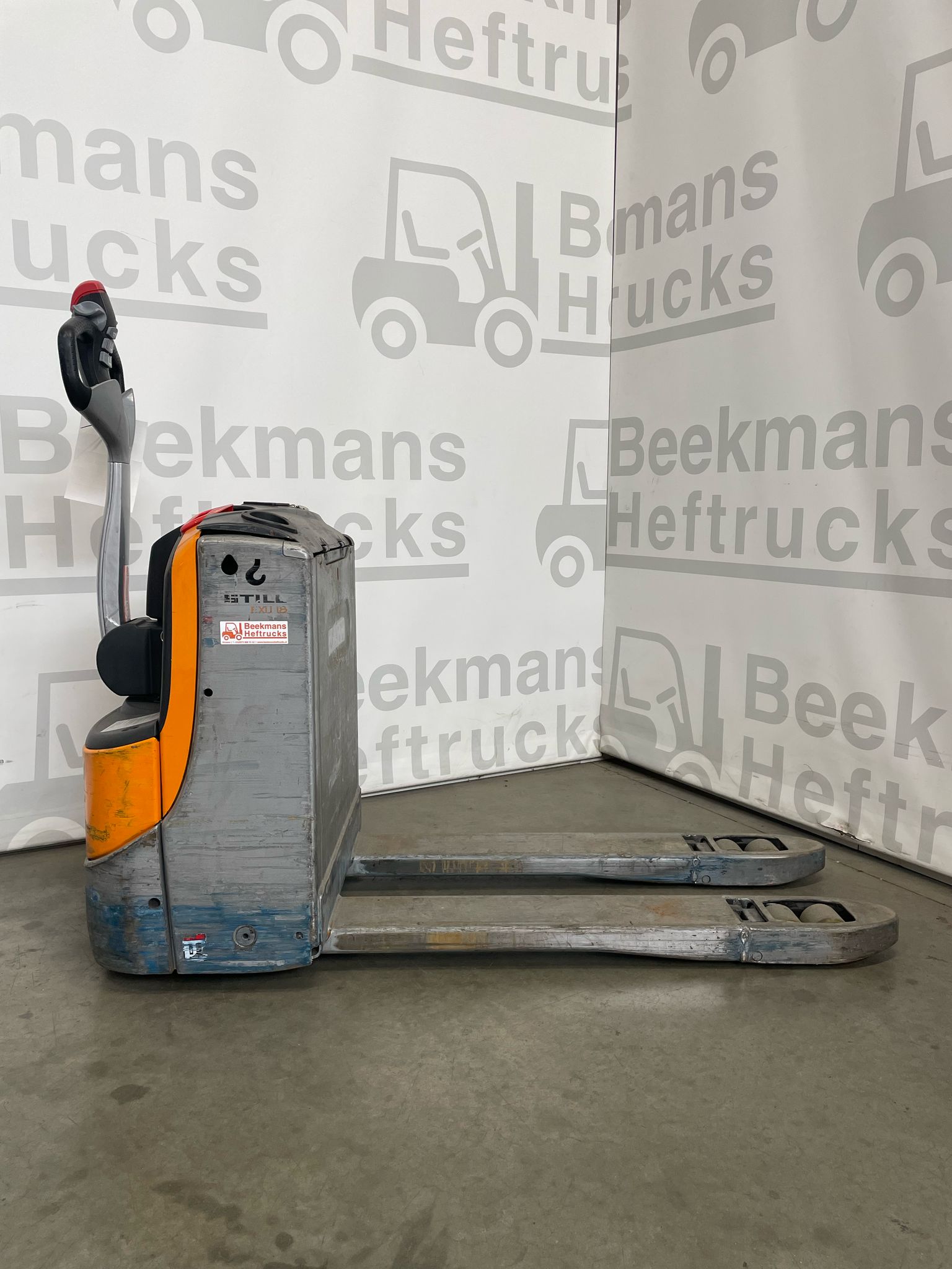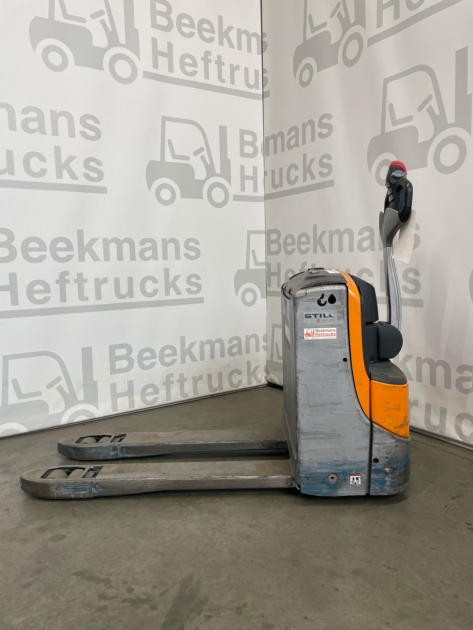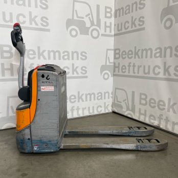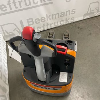 De Still EXU18 2017 pompwagen van Beekmans Heftrucks is een betrouwbare en compacte oplossing voor intern transport. Deze gebruikte elektrische pompwagen beschikt over een draagvermogen van 1800 kg en is uitgerust met een vorklengte van 1150 mm en een breedte over de vorken van 560 mm. Dankzij de dubbele palletrol is manoeuvreren met zwaardere lasten eenvoudiger en efficiënter.