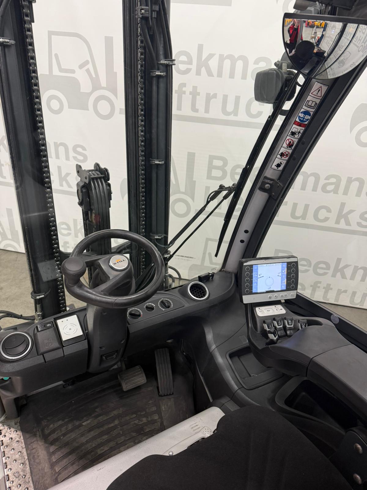Dankzij de cabine, armsteun met joystick en mini lever bediening werk jij ergonomisch en met maximale controle. De side shift en free-lift functie zorgen ervoor dat jij eenvoudig en precies kunt manoeuvreren, zelfs in ruimtes met beperkte doorrijhoogte.