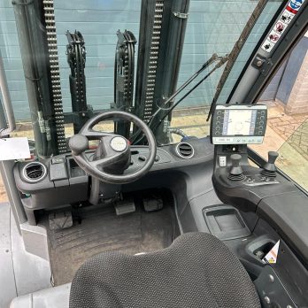 Deze gebruikte heftruck heeft 9207 draaiuren, maar is volledig operationeel en direct inzetbaar. Let op: het getoonde voorzetstuk is optioneel en niet inbegrepen.