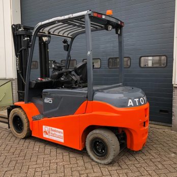 De Toyota 8FBE20T van Beekmans Heftrucks is een elektrische heftruck uit 2016, ideaal voor diverse toepassingen en te huur voor uw specifieke behoeften. Met een hefhoogte van 6070mm en een capaciteit van 1450kg biedt deze heftruck betrouwbare prestaties. De doorrijhoogte bedraagt 2130mm en de vorklengte is 1200mm, waardoor deze machine geschikt is voor verschillende situaties. Uitgerust met een krachtige 750ah batterij en een aandrijfunit van 48V, zorgt deze heftruck voor efficiënt en langdurig gebruik. Belangrijke kenmerken zijn onder andere een vierdelige mast, side shift, vorkversteller, armsteun/mini lever, non-marking banden, vol rubber banden, verlichting voor, blue spot en free-lift. Met 8296 draaiuren is deze heftruck goed onderhouden en klaar voor gebruik. Bent u geïnteresseerd in het huren van deze veelzijdige heftruck? Neem direct contact op via ons offerteformulier.
