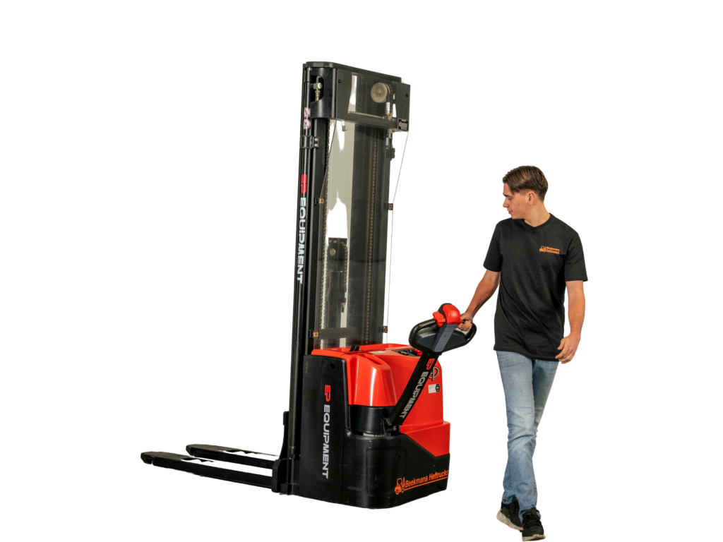 Compacte elektrische stapelaar waarbij de gebruiker achter het apparaat meeloopt. Vaak gebruikt in krappe ruimtes of winkels.
